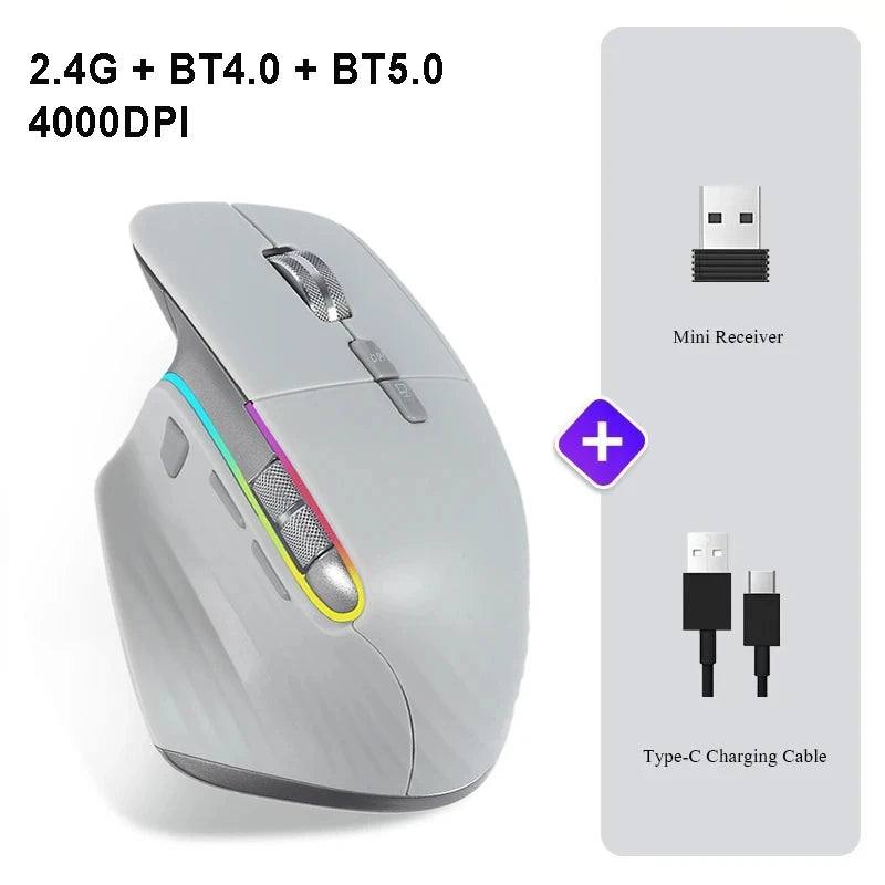 Say goodbye to wrist strain and hello to productivity with the CHYI Tri-Mode Vertical Wireless Mouse. Designed with ergonomics in mind, this rechargeable mouse supports 2.4GHz wireless + Bluetooth 4.0 + Bluetooth 5.0 connections for maximum compatibility with all your devices. With up to 4000 DPI adjustable sensitivity and 6 responsive buttons, it's perfect for both office work and casual gaming.